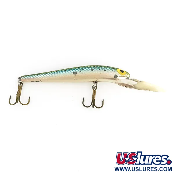 Un acabado realista de Trucha cubre el cuerpo esbelto de este señuelo vintage, fabricado por Storm con el código de producto 8556. Con un peso de 8,8 g (1/3 oz) y una longitud de 9 cm (3 1/2"), este ejemplar cuenta con el característico babero de profundidad diseñado para alcanzar entre 2 y 4 metros (6,5–13 ft). El logotipo de STORM permanece nítido en el lateral de la cola, marcando sus orígenes de fabricación en EE. UU. Utilizado principalmente para curricán o lanzado al pescar lucioperca, su diseño flotante proporciona una utilidad distinta en varias capas de agua. El estado es 4/5, mostrando ligeras evidencias de uso en el babero sobredimensionado y en la pintura del cuerpo, lo cual es consistente para una herramienta vintage de esta antigüedad. Los herrajes originales muestran algunos signos del paso del tiempo, pero se mantienen estructuralmente sólidos.