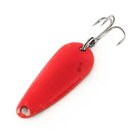Con una longitud exacta de 4 cm (1 1/2"), el cuerpo metálico denso de 9 g (1/3 oz) otorga a esta cucharilla Aero UV su peso de lanzado. Con un acabado en Rosa/Oro, el señuelo —identificado por el código de producto 11490— posee una superficie altamente reactiva que brilla intensamente bajo la luz ultravioleta. Fabricada en EE. UU. por Aeroplane Spinner, se conserva en un estado 5/5, mostrando un exterior limpio y vibrante sin desgaste en la pintura ni en el reverso pulido en tonos dorados. El montaje incluye un anzuelo triple estándar con anilla abierta, listo para pescar. Su forma de lágrima asegura la estabilidad durante la recogida, mientras que el contraste de colores metálicos y fluorescentes garantiza la visibilidad en diferentes claridades del agua.