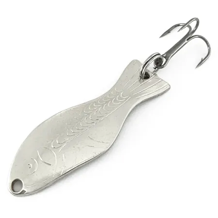 Con un peso de 1/4 oz (7 g), esta clásica cucharilla ondulante presenta un brillante acabado de Níquel que mantiene un alto nivel de claridad. Este ejemplar está en condición 5/5, mostrando una superficie limpia y reflectante en sus 2" (5 cm) de longitud. Marcada con el sello "AL'S GOLDFISH PAT. 21408" en el reverso, el diseño data de 1952 y obtuvo un lugar en la lista de los "50 mejores señuelos de todos los tiempos" de Field & Stream en 2006. El cuerpo en forma de pez está detallado con patrones de escamas grabados y un distintivo ensanchamiento en la cola, montado con un robusto anzuelo triple mediante una anilla abierta. Identificada con el código de producto 7163, esta cucharilla fabricada en EE. UU. es un elemento básico para los pescadores de truchas y peces de pan.