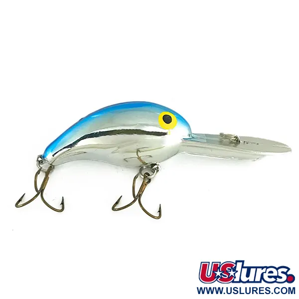 Con un llamativo acabado Silver / Light Blue, este crankbait de profundidad refleja la luz de manera eficaz a través de sus costados cromados espejados. Con un peso de 8,5 g (1/3 oz) y un perfil compacto de 5 cm (2 pulgadas), el Bandit 300, código de producto 6945, es un diseño estadounidense muy valorado para alcanzar profundidades de 2 a 3 m (6,5 a 9,8 pies). Su babero transparente de gran tamaño se combina con un cuerpo flotante, lo que permite que el señuelo ascienda durante las pausas para evitar obstáculos bajo el agua. Los ojos amarillos de alto contraste con pupilas negras destacan sobre el degradado de azul a plateado, proporcionando un blanco claro para lucios y luciopercas tanto en lance como en curricán. Las cámaras de sonido internas proporcionan un traqueteo que complementa su acción. Este ejemplar se encuentra en un estado 5/5, conservando su brillo metálico de alta intensidad y sus componentes originales. La parte inferior y la cola están equipadas con dos anzuelos triples bronceados, sujetos por robustas anillas abiertas típicas de la producción de Bandit en EE. UU.
