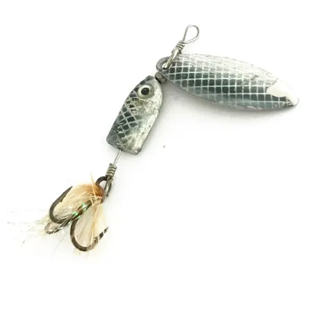 Con un peso de 5g, esta cucharilla fabricada en Finlandia muestra la artesanía de calidad que se espera de la herencia finlandesa de la marca. El acabado Rainbow Silver del Blue Fox Flash Deep Runner presenta un patrón de escamas tipo rejilla tanto en la hoja en forma de lágrima como en la cabeza plomada tipo pez, lo que la diferencia de los señuelos lisos estándar. Con una medida de 5,5cm, este espécimen lleva el código de producto 8318 y se presenta en una condición de 4/5, conservando un brillo limpio en su estructura. El diseño utiliza un anzuelo triple con plumas naturales, proporcionando un perfil suave detrás del cuerpo de plomo. Los coleccionistas apreciarán la alineación de la pala y el torso lastrado, una configuración técnica diseñada para alcanzar profundidades específicas durante la recogida. El chapado de plata permanece brillante, especialmente en los detalles de las escamas texturizadas que definen esta variación de color específica.
