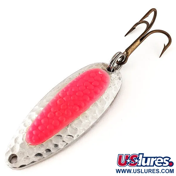 Con un peso de 1/2 oz (14 g), este cuerpo de latón de gran grosor está diseñado para cortar los vientos costeros y alcanzar pozas profundas en los ríos con facilidad. Sus 2 1/4" (5,5 cm) de longitud presentan un acabado clásico de níquel martillado, diseñado para dispersar la luz de forma similar a las escamas reflectantes de un pez pasto. Una característica definitoria del código de producto 12363 es el exclusivo inserto que simula un huevo de salmón; en este modelo Blue Fox Pixee UV específico, ese inserto rojo proporciona un punto de mira de alta visibilidad que brilla intensamente en aguas oscuras o condiciones de poca luz. Viene equipado con un anzuelo triple con acabado en bronce y un robusto anilla abierta, listo para la presión de capturar salmones, truchas cabeza de acero o lucios. Este señuelo hereda el diseño de los National Expert Bait originales, perfeccionados para un balanceo natural en las corrientes del río o una trayectoria estable en curricán. El ejemplar se encuentra en excelente estado, mostrando evidencias claras de un almacenamiento cuidadoso, con una calificación de condición de 5/5.