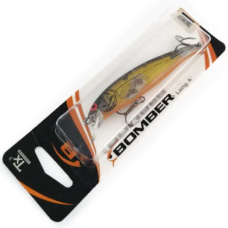 Con una longitud exacta de 9 cm (3 1/2"), el perfil estilizado de este jerkbait clásico sigue siendo un básico para los pescadores que buscan desde luciopercas hasta black bass. Este modelo específico, código de producto 9809, presenta el esquema de color XCHO: un cuerpo amarillo dorado acentuado con barras verticales oscuras y un ojo rojo de alta visibilidad. Con un peso de 9,5 g (1/3 oz), el señuelo está diseñado para ofrecer versatilidad en diferentes capas de agua; alcanza profundidades de 0,6-0,9 m en lance, o zonas más profundas de 1,2-2,4 m en curricán. El embalaje vintage indica que esta unidad fue ensamblada en México y viene equipada con anzuelos Tx3. Este ejemplar no ha sido usado y permanece en su blíster original, conservando la imagen de marca de Bomber Lures de la era 2004 y el babero cuadrado transparente. Es un ejemplo bien conservado de la serie B14A, adecuado para capturar black bass, bass de boca pequeña y lubina estriada.