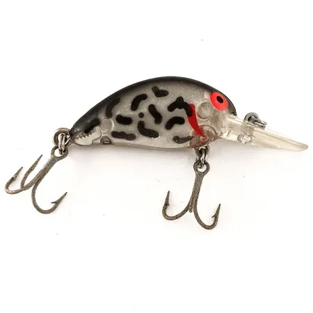 Con un peso exacto de 1/4 oz (7 g), este crankbait compacto ejemplifica la artesanía que convirtió a Bomber en un nombre legendario en la fabricación de señuelos estadounidenses. Este ejemplar de 1 3/4" (4,5 cm), identificado con el código de producto 12519, presenta un cuerpo plateado humo translúcido adornado con llamativas manchas de leopardo negras y sutiles marcas rojas en las agallas. Diseñado como señuelo flotante, utiliza un babero redondeado transparente para alcanzar profundidades de entre 0,9 y 2,1 m (3-7 pies), un rango clásico para buscar luciopercas o lucios activos. El perfil visual se ve acentuado por sus distintivos ojos rojos con pupilas negras, un rasgo característico que los coleccionistas suelen buscar en los primeros modelos de plástico de Bomber. El equipo está en condición 5/5, con dos anzuelos triples afilados y una anilla abierta resistente. Originaria de EE. UU., la serie Model B ayudó a definir la categoría moderna de crankbaits de buceo poco profundo a medio gracias a su duradero cuerpo moldeado.