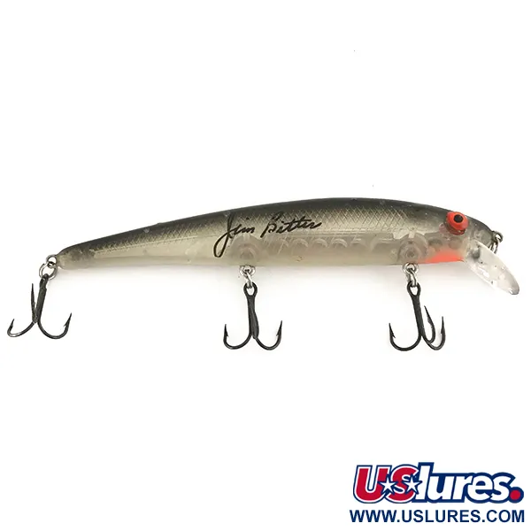 Con un acabado XCHO translúcido y brillante, el cuerpo de este minnow de 14 g (1/2 oz) resalta un intrincado patrón de escamas interno y la firma clásica del profesional de BASS Jim Bitter. Con una longitud de 12 cm (4 3/4"), este Bomber Pro 15A fabricado en EE. UU. (Código de producto 7474) está diseñado con una flotabilidad suspendida que lo mantiene estable en la columna de agua durante las pausas. El cuerpo transparente se acentúa con un lomo de color carbón oscuro, ojos rojos intensos y una sutil mancha naranja en la garganta, proporcionando un perfil realista tanto para lances como para curricán. En el interior del modelo 7474, una cámara de ruido proporciona un perfil acústico de traqueteo que complementa su atractivo visual. Este espécimen específico mantiene una condición 5/5, mostrando el hardware original con tres anzuelos triples afilados con acabado negro y un babero de buceo limpio. Construido para alcanzar profundidades de 1,2 a 1,8 m (4-6 pies), el señuelo sigue siendo el favorito de los coleccionistas que aprecian el vínculo histórico de la serie Jim Bitter con el éxito en los torneos profesionales. La firma en el lateral está notablemente clara y bien conservada.