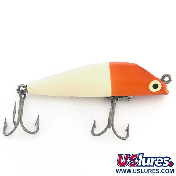 Un acabado bicolor Rojo / Blanco define este popper de superficie de 10 g (1/3 oz), que presenta una cabeza brillante y un cuerpo de color crema. Con una longitud de 9 cm (3 1/2"), el señuelo lleva el sello "BOONE CASTANA" en su parte inferior, distintivo de la artesanía de la empresa estadounidense. El montaje incluye dos anzuelos triples ventrales fijados con herrajes robustos, diseñados para resistir ataques en superficie. En el modelo 7643, el perfil de boca cóncava es la característica principal para el desplazamiento de agua. Con un estado de 4/5, la pintura se mantiene brillante en el cuerpo con solo leves signos de edad en los ojales metálicos y las puntas de los anzuelos. Este peso de 10 g lo convierte en una opción versátil para pescar en llanuras poco profundas o cerca de coberturas superficiales.