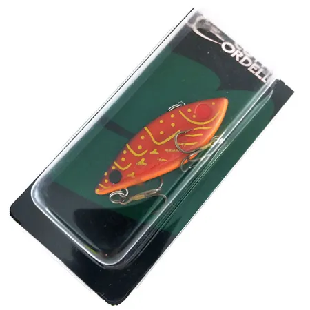 Vibrantes tonos naranjas y rojos definen el cuerpo de este Cotton Cordell Super Spot, que lleva el código de producto específico 9744. Con un peso ligero de 7g (1/4oz) y una medida de 5,5cm (2 1/4"), este señuelo lipless hundido está construido para ofrecer versatilidad en profundidades variables, ya sea lanzando o haciendo curricán. El intrincado patrón de líneas y puntos amarillos sobre el color base cálido sugiere una imitación de cangrejo o pequeño pez pasto, acabado con un ojo negro distintivo como punto de enfoque. Este ejemplar en particular se presenta en su blíster original y permanece sin usar, manteniendo una calificación de condición de 6. La cámara interna de sonajero está diseñada para emitir sonido durante la recogida, una característica distintiva de la serie Super Spot desde su creación en los USA. Ideal para la pesca de lucio, perca o lucioperca, el perfil compacto del señuelo facilita el trabajo a través de diferentes capas de la columna de agua.