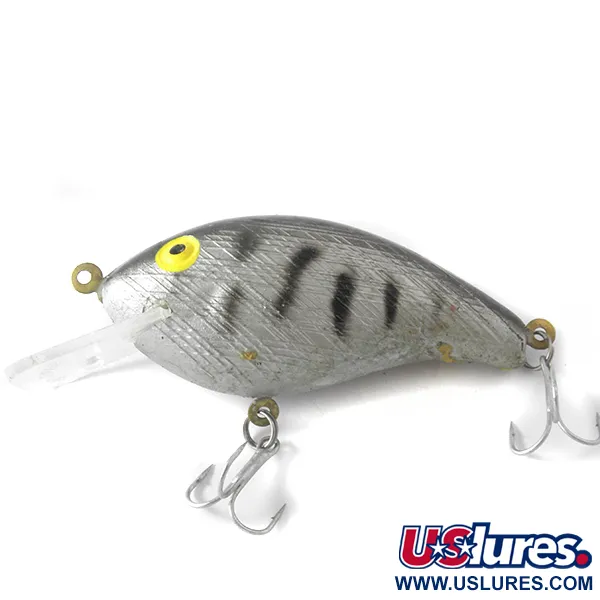 Escamas grises texturizadas envuelven el cuerpo de plástico de este patrón Gray Tiger, acentuado por llamativas rayas verticales y distintivos ojos amarillos. La marca Dae Yang está claramente grabada en el babero transparente, identificando este ejemplar de 7 cm para su colección. Con un peso de 14 g, está diseñado para alcanzar profundidades de 1,2 m a 3,0 m, ya sea en lanzado o curricán. El equipo consta de dos anzuelos triples sujetos por anillas abiertas. Con una calificación de estado de 4/5, el señuelo muestra un ligero desgaste superficial que denota su naturaleza vintage, manteniéndose en buen estado de conservación. Este modelo en particular, designado con el código de producto 4102, utiliza un perfil de flotabilidad flotante para recogidas lineales o de tipo stop-and-go.