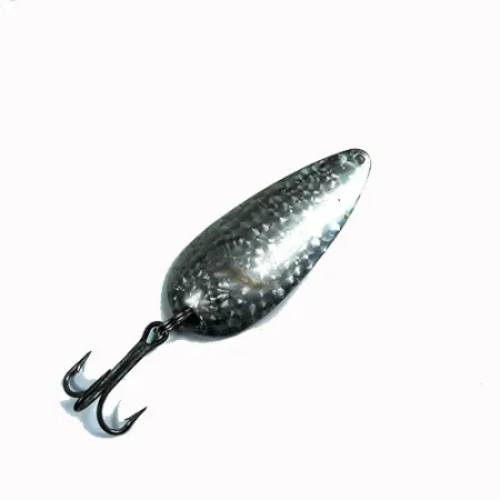 Adornada con un acabado martillado «Crystal» de escamas plateadas, esta clásica cucharilla ondulante refleja la luz a través de su superficie hoyuelada para captar la atención de los depredadores de aguas profundas. Esta cucharilla de lanzado de 21 g (3/4 oz) mide 7 cm (2 3/4 pulgadas) y presenta el icónico perfil oblongo y cóncavo que Eppinger ha perfeccionado en Michigan desde la fundación de la empresa en 1906. Identificada con el código de producto 0334, este ejemplar de Dardevle Dardevlet representa la artesanía fiable que Lou Eppinger inició en su sótano de Detroit. Al observar de cerca los componentes, el acabado texturizado y el anzuelo triple oscuro se mantienen en un sólido estado 4/5. La estructura de metal grueso está diseñada para una recogida lenta y constante, testimonio de un diseño tan eficaz que una vez se incluyó en los kits de supervivencia de la aviación militar de los EE. UU. El anzuelo está montado de forma segura en la base del cuerpo en forma de lágrima mediante una resistente anilla abierta.