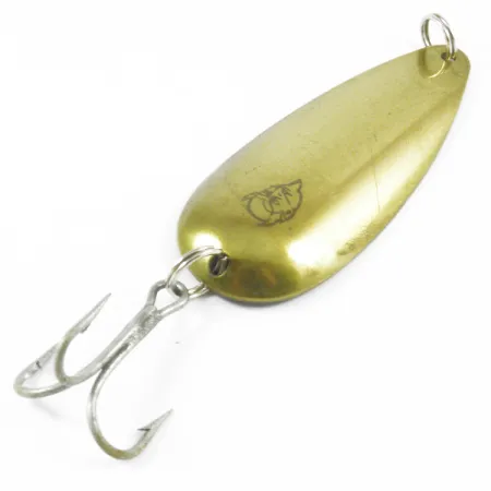 El estampado del icónico logotipo de la "cabeza de diablo" en la cara convexa identifica inmediatamente a este Dardevlet como una pieza del patrimonio de la pesca estadounidense. Esta cucharilla ondulante Eppinger Dardevle, identificada con el código de producto 3282, presenta un acabado de latón macizo que se mantiene brillante y reflectante. Mide 2 3/4" (7 cm) de longitud y pesa unos considerables 3/4 oz (21 g), lo que la convierte en una opción versátil para diversas especies de agua dulce. En el lado cóncavo, el sello reza claramente "DARDEVLET DETROIT U.S.A.", lo que indica su época de producción por parte del legendario fabricante fundado por Lou Eppinger en Michigan. Los herrajes están en excelente estado, con un anzuelo triple original en tono plateado y un conjunto de anilla abierta. Con una calificación de 5/5, el señuelo muestra una superficie limpia en su totalidad, conservando los finos detalles del metal. El perfil de lágrima de la cucharilla se forma mediante troqueles patentados, una técnica de fabricación que Eppinger ha perfeccionado durante más de un siglo. Una pequeña anilla abierta está fijada en la punta, proporcionando un punto de conexión seguro para su aparejo.
