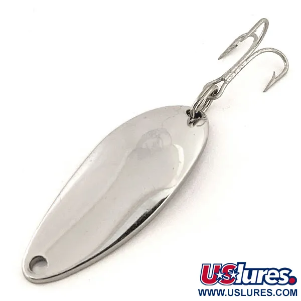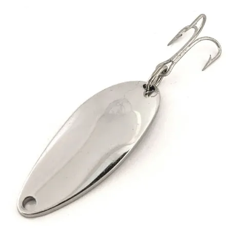Con la inscripción "DEVLE-DOG 5200 DETROIT USA" claramente estampada en el lado cóncavo, esta cucharilla ondulante con acabado en níquel representa un capítulo clásico de la historia de fabricación de Eppinger. Con unas medidas de 4 cm (1 1/2") y un peso de 7 g (1/4 oz), ofrece un perfil compacto para lanzado o curricán. El acabado de níquel pulido se seleccionó por sus destellos de alta visibilidad, lo que la convierte en una opción fiable en aguas claras donde imita la apariencia natural de los pequeños peces pasto. Este ejemplar, con código de producto 12822, cuenta con un anzuelo triple y una anilla abierta que muestran la robustez establecida por Eppinger en Detroit a partir de 1906. Su estado está calificado como 5/5, ya que las superficies metálicas están limpias y sin desgaste apreciable. El estampado indica que proviene de la era anterior al traslado de la empresa a Dearborn en 1959, destacando su conexión histórica con los primeros éxitos de la marca.