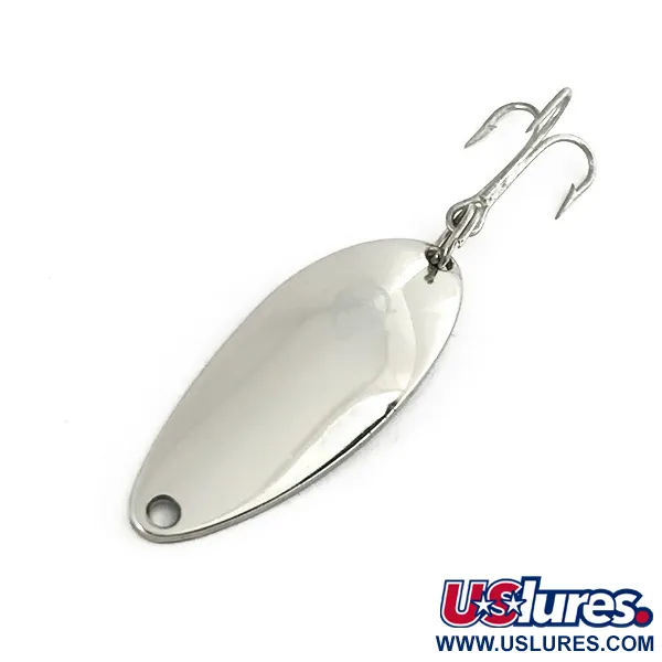 La marca "DETROIT U.S.A.", grabada claramente en el metal pulido, identifica a esta Dardevle Devle Dog 5200 como un testimonio tangible de la historia de Eppinger. Catalogada con el código 7422, la cucharilla mide 4 cm (1 1/2") y pesa 7 g (1/4 oz), lo que la convierte en una opción versátil para el lanzado ligero o el curricán. El acabado Níquel de alto brillo permanece brillante y como un espejo, reflejando su estado sin usar. Este modelo específico presenta la clásica forma de cuchara oblonga con un perfil cóncavo profundo, un diseño característico que Eppinger ha utilizado para generar un movimiento de balanceo distintivo durante la recogida. El herraje trasero incluye un robusto anzuelo triple unido mediante una anilla abierta, mientras que la fijación delantera es un simple orificio perforado limpiamente. Encontrar el sello de Detroit en un espécimen tan impecable proporciona una conexión directa con las raíces de Michigan de la marca a mediados de siglo, antes de que la empresa se trasladara a Dearborn en 1959. Cada detalle de esta cucharilla de 7 g (1/4 oz), desde el estampado preciso hasta el niquelado uniforme, demuestra la calidad de fabricación estadounidense que ha mantenido a estos señuelos en las cajas de pesca durante generaciones.