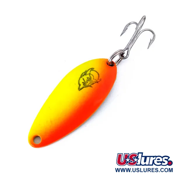 Con un degradado vibrante que va del amarillo sol al naranja intenso, el acabado de esta cucharilla ondulante está diseñado para un máximo impacto visual. La fábrica Eppinger en Michigan las fabrica desde 1906, y esta Dardevle Devle Dog 5200 UV con código de producto 10450 es testimonio de ese legado. Bajo luz UV, el acabado fluorescente emite un fuerte brillo verde y naranja, proporcionando visibilidad en aguas tomadas o a mayores profundidades donde la luz es escasa. La cara frontal está marcada con el clásico logotipo de la cabeza del diablo, mientras que el reverso presenta un niquelado limpio. Con una medida de 4 cm (1 1/2") y un peso de 7 g (1/4 oz), es una opción equilibrada para diversas especies. Este ejemplar está sin usar, conservando su brillo original de fábrica. El equipo consta de una robusta anilla abierta unida a un anzuelo triple afilado, listo para la acción.