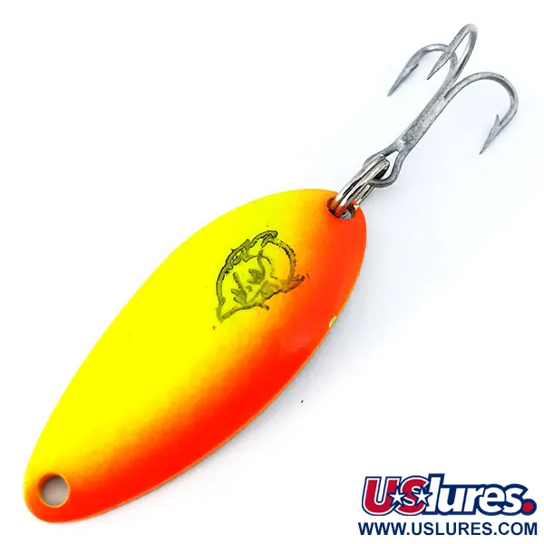 Con un peso compacto de 7g (1/4oz), el cuerpo metálico de esta cucharilla ondulante presenta un degradado vibrante desde un amarillo soleado hasta un naranja rojizo intenso. La superficie muestra el icónico sello de "Cabeza de Diablo" de Dardevle impreso con nitidez en tinta negra cerca del centro de su estructura de 4cm (1 1/2"). Al ser este Devle Dog 5200 (Código 10819) una pieza sin usar, el acabado permanece en estado impecable, luciendo su brillo original. Esta variante específica está acabada con un revestimiento fluorescente que reacciona vivamente bajo la luz UV, transformando los colores diurnos en un llamativo resplandor verde neón y naranja. Es una fascinante adición técnica al legado de la marca que comenzó con Lou Eppinger en Detroit en 1906. El reverso presenta un acabado de níquel pulido, una opción tradicional para maximizar los destellos cuando la luz incide en el metal. El hardware incluye un anzuelo triple afilado sujeto por una anilla abierta de alta resistencia, diseñada para lances a varias profundidades o curricán controlado. A diferencia del Dardevle estándar de cuerpo ancho, el Devle Dog ofrece un perfil más estilizado que presenta un blanco distinto para lucios o truchas.