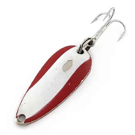 Un vibrante acabado Red Devle define a esta cucharilla de 1 1/2" (3,5 cm), que luce la clásica franja blanca diagonal convertida en un emblema de la marca Eppinger. Con un peso de 3/16 oz (6 g), este ejemplar en particular muestra ligeras señales de uso con una pequeña marca de desgaste en la pintura en la cara frontal, lo que le otorga una sólida calificación de estado de 4/5 para un veterano de la caja de pesca. Al dar la vuelta al señuelo, se descubre un dorso pulido con el sello "DARDEVLE MIDGET U.S.A.", identificándolo como un producto de los moldes de fabricación de Michigan utilizados desde que Lou Eppinger trasladó la empresa de Detroit a Dearborn en 1959. Este modelo 20790 viene montado con un anzuelo triple de estilo original y una anilla abierta, listo para el lanzado o el curricán ligero en aguas claras, donde el dorso niquelado proporciona un destello natural. La forma de lágrima del metal está cuidadosamente contorneada para imitar el movimiento de un pez pasto sin necesidad de técnicas de recogida complejas.