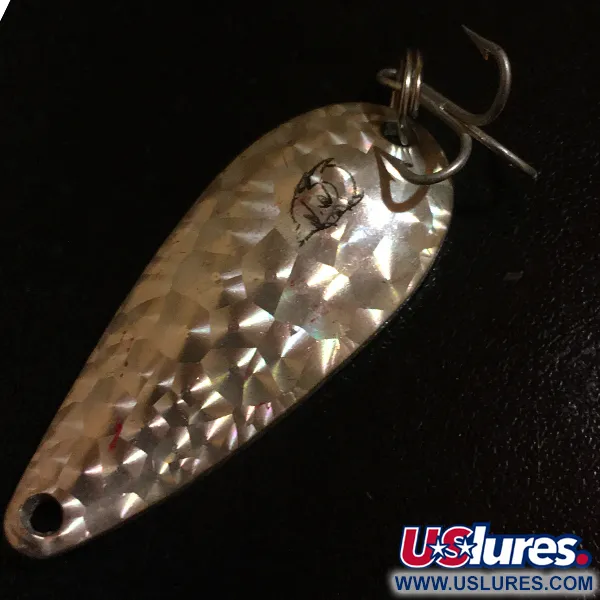 Un acabado facetado 'Crystal' define a esta cucharilla ondulante vintage de Eppinger, un patrón que se dejó de fabricar en la década de 1980. Con un peso de 1/3 oz (9 g), esta Dardevle Spinnie Crystal (código de producto 4408) es un ejemplo clásico de la artesanía estadounidense de señuelos de Dearborn, Michigan. El cuerpo en forma de lágrima de 1 3/4" (4,5 cm) está troquelado con el icónico logotipo de la cabeza del diablo, una marca de autenticidad que los coleccionistas buscan en estos modelos fabricados en EE. UU. La superficie reflectante está diseñada para maximizar los destellos de luz, utilizando los moldes patentados por los que Eppinger es famosa. Para un señuelo de su edad, los herrajes se mantienen robustos, con una anilla abierta resistente y un anzuelo triple afilado adecuado para lance o curricán. Este ejemplar se encuentra en un estado 5/5, manteniendo un brillo limpio y radiante en toda su superficie texturizada. Históricamente, estos modelos Spinnie más pequeños fueron diseñados para la versatilidad, sirviendo a menudo como la opción preferida para truchas o peces de pequeña talla cuando se requería un perfil más reducido. El interior cóncavo de la cucharilla está pulido con un alto brillo, contrastando con el exterior multiangular que captura la luz desde todas las direcciones.
