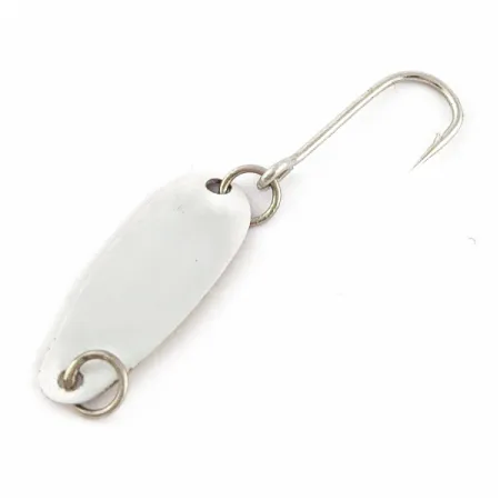 Un acabado perla brillante recubre el cuerpo metálico fino de esta clásica cucharilla americana, proporcionando un destello sutil y natural bajo la superficie. Con solo 2 cm de longitud, el señuelo está diseñado para pescas ultra-ligeras donde se requiere un perfil pequeño para provocar la picada de truchas o panfish recelosos. El peso es de tan solo 0,6 g (1/64 oz), lo que requiere un toque ligero y un equipo especializado para una presentación adecuada. Este modelo Dick Nite, identificado con el código 24068, representa un legado de material de pesca fabricado en EE. UU. en el que los pescadores han confiado durante décadas. Viene equipada con un anzuelo simple montado sobre una anilla abierta (split ring) resistente, una configuración que suelen preferir los coleccionistas y entusiastas de la pesca con captura y suelta por su eficiencia y menor impacto en el pez. Al observar el ejemplar, el acabado y los componentes están en excelentes condiciones, mereciendo una calificación de 5/5 por su conservación. La forma de lágrima de la cucharilla es un sello distintivo de la marca Dick Nite, diseñada para desplazarse a través de la columna de agua con una resistencia mínima.
