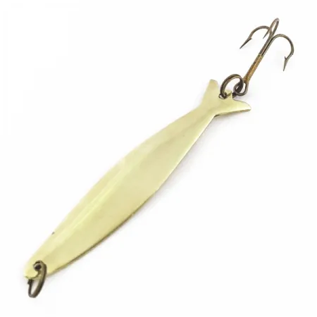 El latón macizo le da a esta cucharilla de 7 cm (2 3/4") un brillo natural que se mantiene efectivo bajo diversas condiciones de luz. Con un peso exacto de 6 g (3/16 oz), su perfil delgado permite lances precisos en lugares estrechos o a lo largo de los bordes de la vegetación. Eagle Tool Inc. fabricó este modelo con un estampado distintivo de cola de pez, identificado con el código 24582. Al no haber sido usado nunca para pescar, el metal se conserva en estado nuevo con una calificación de 6, mostrando su lustre original de fábrica. El cuerpo estampado está diseñado para ofrecer estabilidad durante recogidas constantes o presentaciones verticales. Su color latón natural proporciona un reflejo tenue que a menudo resulta más eficaz que los acabados brillantes en aguas claras. Se coloca un único anzuelo triple en la parte posterior del cuerpo cónico para equilibrar la distribución del peso.