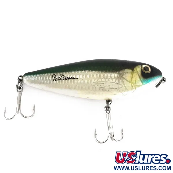 La firma de "Bill Dance" recorre el lateral de escamas plateadas de este clásico de Heddon, marcando su lugar en la serie Excalibur. Con una longitud de 7 cm (2 3/4") y un peso de 10 g (1/3 oz), el señuelo muestra un perfil de pez pasto realista con un lomo verde intenso y un patrón de malla plateada texturizada en los flancos. Un suave toque azul bajo la mandíbula complementa los ojos dorados y la barriga de color crema. Diseñado como un señuelo de superficie con sonajero, es capaz de alcanzar profundidades de 0,5 m (1,6 ft) durante la recogida. Este ejemplar en particular, con el código de producto 8055, se mantiene en un excelente estado 5/5. Fabricado en EE. UU., el cuerpo está equipado con dos potentes anzuelos triples para asegurar una clavada eficaz. Las cámaras de sonido internas proporcionan una presencia acústica específica mientras el señuelo trabaja sobre el agua.