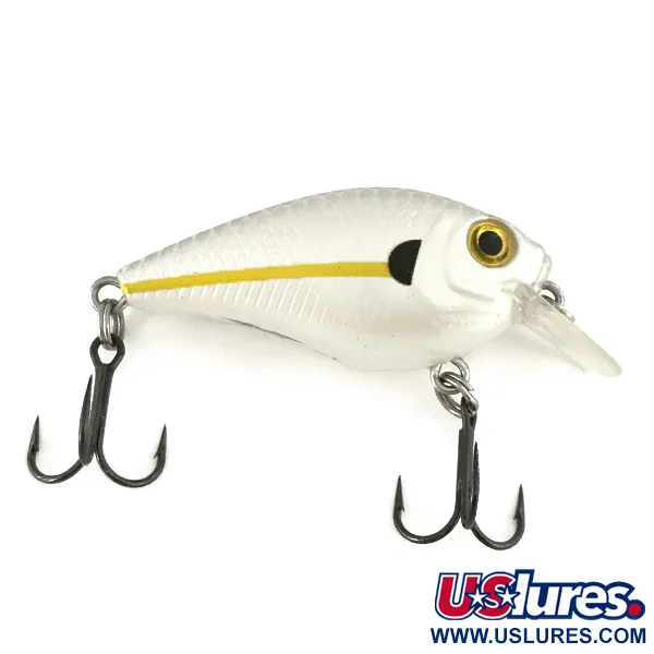 Con un peso de 6g (3/16oz), este crankbait compacto H2O XPRESS está diseñado para profundidades de entre 0,6 m (2 pies) y 1,5 m (5 pies). Su perfil de 4 cm (1 1/2") luce un acabado blanco perlado, resaltado por una marcada franja lateral amarilla y una mancha oscura en la espalda cerca de la zona branquial. Un sutil patrón de escamas azul grisáceo cubre el lomo, aportando profundidad visual a su coloración tipo shad. Identificado con el código de producto 7456, este modelo sonoro confía en su acústica interna para llamar la atención en la columna de agua. El señuelo está equipado con anzuelos triples de níquel negro y se mantiene en estado 5/5, con un cuerpo impecable y un babero transparente. Los herrajes están sujetos por anillas abiertas duraderas, listo para el lanzado o curricán ligero.