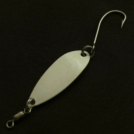 Con un peso ligero de 1/16 oz (1,9 g), esta cucharilla en forma de lágrima es un ejemplar clásico ultra-ligero fabricado en EE. UU. El acabado de esta Little Shaver 3 específica, identificada con el código de producto 23507, presenta una combinación bitono perla/verde: una cara muestra un sutil perlado blanco y la otra un verde neón vibrante. Mide 1 1/2" (3,5 cm) de longitud y viene equipada con un anzuelo simple de tipo 'bait-keeper' unido mediante una anilla abierta robusta, además de un pequeño quitavueltas en el morro. La parte posterior de la pala está grabada de forma clara con el nombre del fabricante Hildebrandt y el número de tamaño 3. Esta cucharilla se encuentra en estado 5/5, conservando un acabado metálico limpio y brillante con componentes originales y afilados. Diseñada para lanzamientos de precisión en arroyos o estanques, la configuración de anzuelo simple es ideal para la pesca de truchas y peces de pequeña talla, minimizando los enganches.