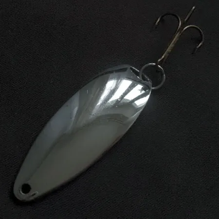 Grabado claramente en la cara convexa del metal pulido, el nombre "JOHNSON'S SPRITE" identifica a esta clásica cucharilla de fabricación estadounidense. Un acabado de níquel brillante proporciona una alta reflectividad, proyectando destellos de luz de manera eficiente a lo largo de su cuerpo de 5 cm (2"). Con un peso de 1/3 oz (10 g), su perfil en forma de lágrima está diseñado para maximizar la distancia de lanzado y permitir una recogida constante. Este ejemplar, con el código de producto 22365, cuenta con un anzuelo triple bien conservado, sujeto por una anilla abierta circular en la parte posterior. Un único orificio para la línea está perforado en el extremo frontal estrecho para permitir una conexión directa o la adición de un mosquetón. El estado de la superficie es excelente, con una valoración de 5/5, manteniendo un brillo intenso sin rastro de oxidación ni pérdida de recubrimiento. Fabricada en EE. UU., la sólida estructura metálica de esta Johnson Sprite sigue siendo un referente para los pescadores que practican métodos tradicionales de lanzado en entornos de agua dulce.