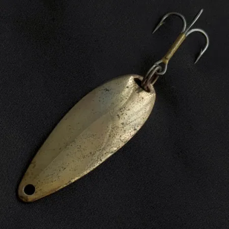 Un logotipo estampado con la leyenda 'JOHNSON'S SPRITE' marca el reverso de este señuelo de 6 cm con forma de lágrima. Con un peso de 10 g, el metal con acabado dorado refleja los estándares de fabricación de mediados de siglo de Johnson en EE. UU. La superficie presenta una valoración de 3/5, mostrando señales de uso y un carácter que cualquier coleccionista de aparejos operativos sabría apreciar. Catalogada bajo el código de producto 23345, la cucharilla cuenta con un orificio en el extremo frontal para el atado directo de la línea o un esmerillón con mosquetón. El extremo posterior está equipado con una anilla abierta de alta resistencia que sujeta un anzuelo triple afilado, diseñado para asegurar la clavada durante sesiones de lanzado o curricán.