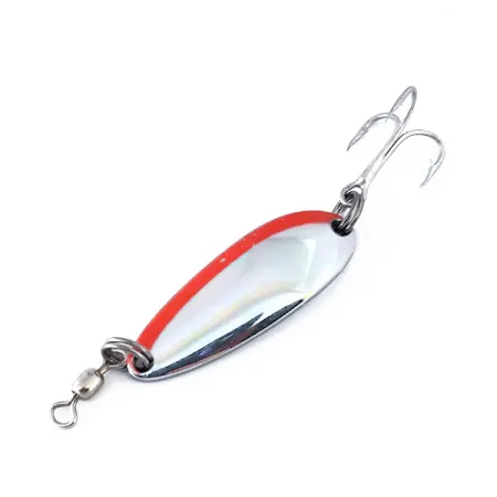 Una distintiva franja naranja recorre el borde exterior de este cuerpo de níquel pulido, proporcionando un fuerte contraste diseñado para captar la luz. Con un peso de 9 g (1/3 oz) y una longitud de 4 cm (1 1/2"), este Luhr Jensen Krocodile mantiene el clásico perfil estrecho y de estampado grueso que forjó su reputación para lances de larga distancia desde muelles o barcos. La parte posterior de la cucharilla presenta las marcas «LUHR JENSEN» y «KROCODILE» estampadas profundamente, un sello distintivo de estas piezas fabricadas en EE. UU. Equipada con un robusto giratorio de barril en la cabeza y un anzuelo triple de alto brillo en la cola mediante anillas abiertas, los componentes del código 10125 permanecen funcionales y brillantes. La superficie reflectante está extremadamente bien conservada, obteniendo una calificación de condición de 5/5 desde el punto de vista visual. Estas cucharillas de tamaño medio se utilizan frecuentemente para el lance o curricán en la pesca de trucha y salmón, confiando en su pesado chapado y su geometría simple y efectiva para el control de la profundidad.