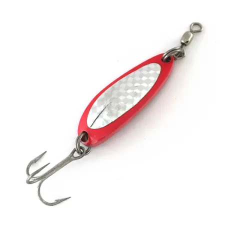 Las escamas holográficas Red / Rainbow proporcionan el destello visual principal en esta cucharilla ondulante Krocodile UV de 1/3 oz (9 g), una herramienta versátil para el equipo de cualquier pescador. Con una longitud de 1 1/2" (4 cm), el ejemplar lleva el distintivo sello "KROCODILE" en su parte posterior, un sello de su herencia Luhr Jensen y sus raíces de fabricación en EE. UU. Catalogado bajo el código de producto 8116, la construcción del señuelo es notablemente más gruesa y estrecha que las cucharillas estándar, lo que permite lanzamientos a larga distancia incluso enfrentando una brisa fuerte. Este ejemplar se encuentra en condiciones sin usar, preservando el acabado de fábrica prístino y las propiedades reflectantes del inserto plateado con patrón de escamas. Los accesorios incluidos consisten en un robusto anzuelo triple y un giratorio de barril montado en la parte superior, destinados a mantener el señuelo estable durante varias velocidades de recogida o durante el curricán. Bajo la luz UV, el cuerpo se transforma, revelando un brillo oculto que diferencia la serie específica UV de los modelos estándar de Luhr Jensen.