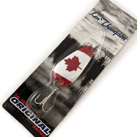 El patrón patriótico de la bandera roja y blanca identifica inmediatamente a esta cucharilla de 5 cm (2") como un pilar de la gama Len Thompson. Con un peso de 14 g (1/2 oz), este modelo #00 está diseñado para un movimiento oscilante lento, un rasgo técnico característico que ha definido a la marca desde su creación en 1929 en Lacombe, Alberta. Este ejemplar pertenece a la Original Series y lleva el código de producto 12062. El montaje cuenta con un anzuelo triple robusto unido mediante una anilla abierta resistente, lo que refleja el compromiso de Thompson-Pallister Bait Co. Ltd. con la durabilidad. Se presenta en su embalaje original y, al no haber sido usada, el señuelo se mantiene en un estado impecable, con una valoración de 5/5. Los coleccionistas valorarán la clara tipografía "Len Thompson" en el cartón, que hace referencia al rendimiento legendario que ha convertido a estas cucharillas de fabricación canadiense en las favoritas para pescar lucios, truchas de lago y salmones en aguas norteamericanas. El lanzado o el curricán con un señuelo tan equilibrado permite un control técnico absoluto durante la recogida.