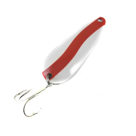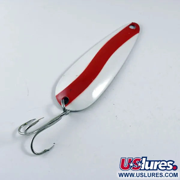 Con un peso sustancial de 28g (1oz), esta cucharilla se siente sólida en la mano, un sello distintivo de la fabricación canadiense de calidad que Len Thompson ha mantenido desde 1929. La cucharilla mide 8cm (3 1/4") de largo y presenta el patrón de color Rojo / Blanco de alto contraste, un acabado diseñado para la máxima visibilidad en diversas condiciones de agua. En el reverso es visible el latón estampado, una característica que proporciona la densidad específica necesaria para alcanzar las capas profundas de la columna de agua durante el curricán o el lance. Este ejemplar, identificado con el código de producto 0739, muestra una calificación de estado de 4/5, conservando su esmalte vibrante con solo evidencias menores de su tiempo en la caja de un coleccionista. Los componentes siguen siendo robustos, con un anzuelo triple de gran calibre unido mediante un resistente anilla abierta, listo para la pesca de lucio, salmón o trucha de lago. Cada curva del cuerpo de latón está diseñada para imitar la silueta de un pez pasto, manteniendo el equilibrio en el que los pescadores han confiado durante casi un siglo.