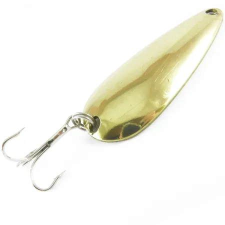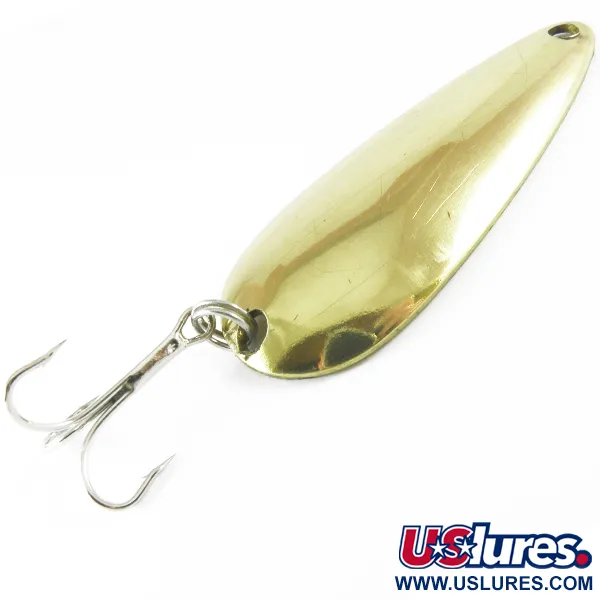 Grabada con el icónico identificador 'LEN THOMPSON NO. 2' en su lado cóncavo, esta pesada cucharilla de latón porta el legado de un diseño canadiense establecido por primera vez en 1929. Con un peso sólido de 28 g (1 oz), su cuerpo metálico proporciona la masa necesaria para lances a larga distancia o para mantener la profundidad durante el curricán. El cuerpo de 8 cm (3 1/4") está acabado en un Oro de alto brillo que cubre toda la superficie en forma de lágrima, destinado a replicar el destello de un pez pasto que huye. Registrada bajo el código 3680, esta unidad está equipada con una anilla abierta duradera y un anzuelo triple de acabado plateado. El diseño es históricamente conocido por producir una acción de balanceo lento, una característica que sigue siendo un estándar para los pescadores de lucio y trucha de lago. Este señuelo específico está en condición 5/5, mostrando una superficie brillante y reflectante libre de arañazos u oxidación. El ojal superior está limpiamente formado, asegurando un punto de conexión suave para su bajo de línea o grapa.