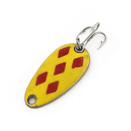 Un cuerpo compacto de 1" (2,5 cm) luce el inconfundible acabado Five of Diamonds amarillo y rojo en este clásico canadiense. Con un peso de 1/8 oz (3,5 g), el Len Thompson #6 está diseñado con el equilibrio que ha definido a la marca desde 1929. El reverso presenta la marca auténtica del fabricante estampada directamente en el metal, identificando el número de modelo y su herencia. Este ejemplar, con código de producto 11269, mantiene su brillo original en el esmalte amarillo y los cinco acentos de diamantes rojos. Los pescadores suelen confiar en estas cucharillas por su acción de balanceo lento que imita a los peces pasto durante el lanzado, la cacea o el jigging de truchas y lucios. El montaje consiste en un robusto anzuelo triple sujeto por una anilla abierta. Cada aspecto de este señuelo refleja los estándares de fabricación establecidos en Canadá hace casi un siglo. El estado del ejemplar está calificado como 5/5, con la pintura y el metal muy limpios.