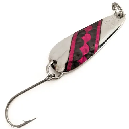 Con un peso de 11 g (2/5 oz), esta cucharilla de latón presenta el perfil clásico de Northern King que llegó al agua por primera vez en 1984. El patrón de color Níquel / Rojo se aplica sobre un cuerpo de latón de alta calidad, con un acabado en tonos plateados diseñado para la visibilidad en aguas profundas. Con una longitud de 5,5 cm (2 1/4"), este ejemplar lleva el código de producto 12484 y representa el legado de fabricación canadiense de Len Thompson. Este señuelo específico está en una condición 5/5, sin mostrar signos de desgaste en sus superficies brillantes ni en el montaje de anzuelo simple. Los pescadores suelen recurrir a ellos cuando pescan al curricán salmón, trucha cabeza de acero o trucha de lago, confiando en el peso del latón para alcanzar las profundidades deseadas. El frente de la cucharilla está estampado con la designación NK 2 D, mientras que el reverso está acabado con un baño de plata limpio y reflectante.