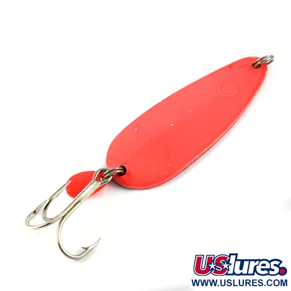 Con la marca "HOTROD" claramente grabada en el reverso niquelado, esta cucharilla de 32g (1 1/4 oz) se identifica como una robusta producción de Luhr Jensen. Con una longitud de 9cm (3 1/2"), el señuelo tiene un acabado frontal en rosa fluorescente vibrante que contrasta con el dorso de níquel pulido para ofrecer un perfil visual versátil. Un pequeño atrayente de plástico rojo está sujeto a la anilla abierta trasera junto a la potera para proporcionar un punto de interés visual secundario. Este ejemplar vintage fabricado en EE. UU., con el código de producto 2896, está en una condición de 4/5, con el acabado y los herrajes nítidos y bien definidos. Está diseñado específicamente para aplicaciones pesadas de lanzado y curricán, donde su peso y perfil son necesarios para alcanzar zonas de aguas profundas.