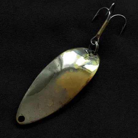 Un llamativo acabado bitono en níquel y latón define a esta clásica cucharilla, una característica que se combina con su peso considerable de 2/3 oz (18 g). Con una longitud de 2 1/4" (5,5 cm), este ejemplar específico, catalogado con el código de producto 22214, es una auténtica pieza de la historia de la pesca de la Seneca Lure Company. Data de la época anterior a que la marca fuera adquirida por Acme a principios de los años 80. Los coleccionistas priorizan la variante "Hula Girl" por la icónica bailarina grabada en el reverso, un detalle omitido en las producciones modernas. Muchos pescadores veteranos todavía aseguran que este pequeño grabado era el secreto del legendario éxito del señuelo en el agua. Los componentes siguen siendo funcionales, con un resistente anzuelo triple unido mediante una sólida anilla abierta. Con una valoración de estado de 3/5, el cuerpo muestra señales evidentes de uso, manteniendo el chapado bimetálico su capacidad para reflejar la luz con eficacia. Esta cucharilla de lanzado fabricada en EE. UU. representa el diseño original de un señuelo que sigue siendo fundamental para los pescadores de trucha y salmón.