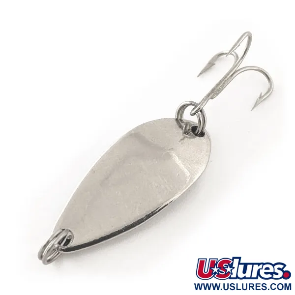 Un peso de 3/16 oz (5 g) otorga a esta cucharilla compacta la masa necesaria para lanzados precisos hacia las estructuras. El acabado en Níquel pulido proporciona un destello de alta visibilidad, característico de la producción original de Seneca Lure en los USA antes de que la marca pasara a manos de Acme a principios de los años 80. Con una medida exacta de 1 1/4" (3 cm), el cuerpo presenta un perfil clásico de lágrima diseñado para una recogida lineal. Cada componente, desde la anilla abierta superior hasta el afilado anzuelo triple en la cola, se mantiene en excelente estado, reflejando una calificación de 5/5. Identificar este ejemplar es sencillo gracias a las letras mayúsculas "LITTLE CLEO" grabadas directamente en el metal en la cara cóncava, un sello distintivo para los coleccionistas del código de producto 12091.