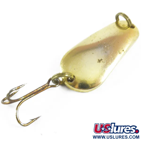 Con una longitud exacta de 3,5 cm (1 1/2"), el perfil de lágrima de esta cucharilla ondulante de metal Sensation está fabricado para aplicaciones versátiles de lanzado o curricán. Estampado en el lado cóncavo del señuelo, el nombre "LITTLE DEMON" identifica sus orígenes como un equipo de pesca fabricado en EE. UU. Un peso de 8 g (1/4 oz) permite un control preciso con equipos ligeros a medios. El acabado dorado mantiene sus cualidades reflectantes, mostrando solo pequeños signos de desgaste superficial que justifican una calificación de estado de 4/5. Anillas abiertas de estilo original conectan el ojal de la línea y el anzuelo triple, que permanece intacto con una ligera decoloración en el metal. Catalogado bajo el código de producto 3508, este espécimen es un ejemplo impecable del diseño de señuelos metálicos de mediados de siglo.