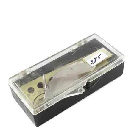 Con una longitud de 6,5 cm (2 1/2"), el acabado en níquel brillante de esta cucharilla sigue siendo tan reflectante como el día en que se fabricó. Este Little Doctor 265 proviene de la división Prescott Spinner de Fred Arbogast Co., un nombre clásico en la producción de aparejos de pesca con sede en Ohio. El ejemplar no ha sido usado y se conserva en su caja de presentación original de plástico negro y transparente con el código de producto 2915. Con un peso de 10 g (1/3 oz), el señuelo está equipado con herrajes originales impecables, incluyendo un anzuelo triple afilado y un cuerpo de metal troquelado que indica su origen en EE. UU. El cartón de soporte se mantiene presente, aunque la carcasa exterior de plástico muestra algunos signos típicos de almacenamiento durante décadas.