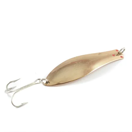 Las superficies de cobre pulido otorgan a esta cucharilla de 21g (3/4oz) un brillo cálido y reflectante que atrae inmediatamente la atención. Identificada como Little Doctor 275, código de producto 2901, este señuelo destaca los estándares de fabricación clásicos estadounidenses de la empresa Prescott Spinner. Con 9cm (3 1/2") de longitud, está construida con un perfil delgado y alargado diseñado para el lanzado o curricán en diversas profundidades. El cuerpo metálico presenta sutiles detalles rojos cerca de la parte frontal, que contrastan con el acabado metálico. Para los coleccionistas, la calificación de estado 5/5 es evidente en las superficies excepcionalmente limpias y el triple de tono plateado bien conservado. Una anilla abierta resistente en la sujeción completa los herrajes de este ejemplar fabricado en EE. UU., que permanece notablemente preservado en toda su longitud de 9cm (3 1/2").