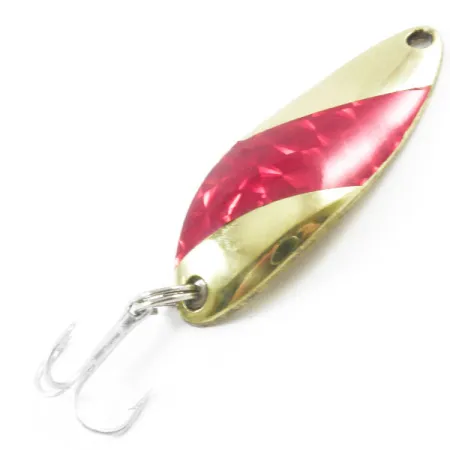 Con un grabado nítido de las marcas "Little Jewel" y Luhr Jensen USA en su reverso cóncavo, esta cucharilla representa una era clásica de la fabricación de artículos de pesca estadounidenses. La cara frontal presenta un llamativo acabado Oro / Rojo, donde un vibrante patrón de diamante rojo facetado contrasta con el metal dorado pulido. Con una medida de 4,7 cm (1 3/4") y un peso de 9 g (1/3 oz), este tesoro vintage descatalogado se identifica por el código de producto 3174. Viene equipada con una anilla abierta robusta y un anzuelo triple afilado, fabricada para aplicaciones de lanzado o curricán. El estado general está calificado como 5/5, mostrando una superficie muy bien conservada que resalta la calidad de los métodos de producción de la vieja escuela de Luhr Jensen antes de que el modelo fuera retirado.