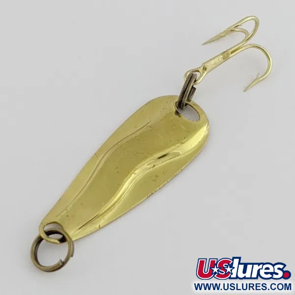 Con la marca "HOT SHOT W" grabada claramente en el reverso, este ejemplar muestra el clásico perfil ondulado que ayudó a definir el legado de Luhr Jensen. Con un peso de 3/64 oz (1,3 g), esta cucharilla de 1 1/4" (3 cm) está diseñada para presentaciones ultraligeras al lanzado o curricán de truchas y percas. El acabado en oro pulido se mantiene vibrante en las superficies curvas, captando la luz a través del distintivo troquelado ondulado del cuerpo. El hardware original está intacto, incluyendo las anillas abiertas y un anzuelo triple con acabado dorado que combina perfectamente con el cuerpo de la cucharilla. Con el código de producto 24440, el señuelo refleja la artesanía de calidad del fabricante de Oregón. La preservación de la superficie es excelente, calificada con un 5/5, con el chapado mostrando un alto brillo y mínimos signos de antigüedad. Los bordes permanecen afilados y la construcción es sólida, conservando el atractivo estético de una pieza de colección.