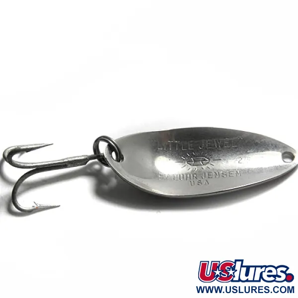 Tonos degradados de rosa, azul y marrón definen el patrón Rainbow Trout de esta Luhr Jensen Little Jewel de 5,5 cm (2 1/4"). Con el código de producto 0159, esta cucharilla de 14 g (1/2 oz) está acabada con una serie de puntos negros distintivos sobre una base blanco mate, replicando la apariencia de un pequeño salmónido. Este ejemplar de fabricación estadounidense está en condiciones 5/5, con la pintura impecable desde el lomo oscuro hasta el ojal. Su equipo consta de un único anzuelo triple unido por una anilla abierta, lo que proporciona una conexión robusta para lances o curricán. La forma de lágrima está equilibrada específicamente para mantener su perfil en el agua, mientras que el esquema de color captura la sutil transición de un azul suave a una cálida franja rosa en el centro del cuerpo metálico.