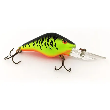 Acabado con el clásico patrón Fire Tiger, este señuelo de profundidad muestra un vibrante cuerpo chartreuse acentuado por llamativas rayas negras de tigre y una garganta naranja prominente. Con un peso de 14 g (1/2 oz) y una longitud de 5,5 cm (2 1/4"), este Mann's Bait 30+ Depth Plus (Código de producto: 11737) es una herramienta especializada para alcanzar objetivos a gran profundidad. El ejemplar se encuentra en magníficas condiciones, manteniendo una calificación de 5/5 con ojos naranjas claros y un acabado intacto. Presenta una flotabilidad de tipo flotante y está diseñado tanto para lanzado como para curricán, con una profundidad de inmersión nominal de 5 m (16,4 ft). Fabricado en los EE. UU., su construcción incluye un babero transparente masivo y dos anzuelos triples originales. Este modelo específico está diseñado para una recuperación uniforme o una cadencia de stop-and-go, lo que permite versatilidad al trabajar en estructuras sumergidas.