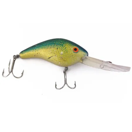 Con un peso de 21g (3/4oz), el Mann's Depth Plus Ol' Homer 20+ (código 10479) es un señuelo especializado para curricán fabricado en EE. UU. El acabado dorado clásico con lomo de escamas verdes es un esquema de color legendario para pescadores que buscan lucio, lucioperca y siluro en aguas profundas. Con una longitud de 8 cm (3 1/4"), el señuelo cuenta con un babero transparente de gran tamaño que le permite alcanzar profundidades de hasta 9 m (30ft). Una característica destacada es su respuesta a la luz UV, emitiendo un fuerte brillo verde que ofrece una ventaja visual crucial en la penumbra de las profundidades. Este ejemplar mantiene un estado 5/5, con solo leves roces superficiales y anzuelos originales. Diseñado como un señuelo flotante de profundidad, se maneja de forma óptima con una recogida lineal o con paradas stop-and-go.