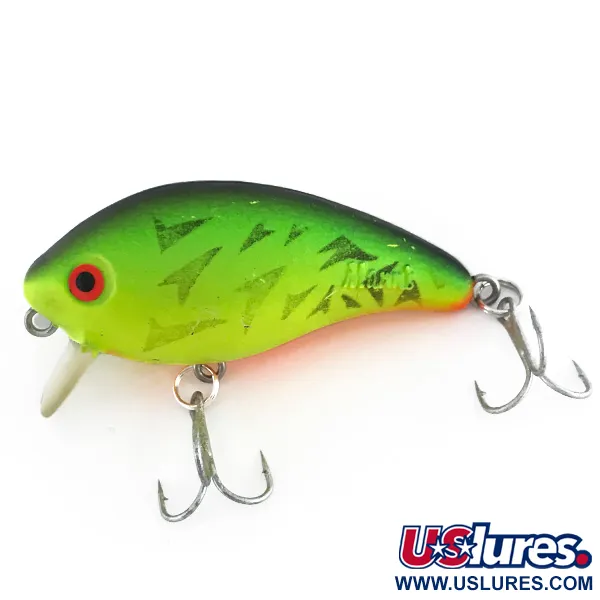 Llamativos detalles triangulares negros contrastan con el vibrante acabado chartreuse de este ejemplar fabricado en EE. UU., sello distintivo de la estética clásica de Mann’s. Con un peso de 2/5 oz (11 g), este Mann's Mid 1- Minus (Código de producto 7951) de 2 1/4" (6 cm) es una herramienta diseñada específicamente para situaciones de pesca en las que se necesita pasar justo por encima de la vegetación sumergida. Está diseñado para mantenerse alto en la columna de agua, alcanzando profundidades de solo 0–1 pies (0–30 cm). El vientre naranja brillante añade un estímulo de alta visibilidad para lucios o luciopercas, mientras que el babero corto y transparente está moldeado específicamente para lanzamientos poco profundos y curricán. Mostrando el carácter justo para demostrar su estatus vintage, el señuelo se mantiene en una condición 4/5, conservando su brillo y el sello de fábrica original. Mann's Bait Company produjo estos modelos como opciones fiables para aguas poco profundas en zonas con mucha cobertura.