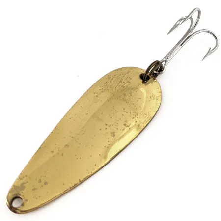 Con una longitud de 5,5 cm, este Nebco FlashBait 266 es un ejemplar bien conservado del diseño estadounidense de aparejos, catalogado con el código 11278. Esta cucharilla pesa 10 g y cuenta con un acabado en cobre que muestra los sellos característicos de «FlashBait» y la marca Nebco en su cara cóncava. Su equipamiento consta de un robusto anzuelo triple plateado unido mediante un anilla abierta, que se mantiene en perfecto estado funcional. El metal presenta ligeras marcas superficiales que corresponden a una valoración de estado 4/5, reflejando su tiempo en una colección de señuelos vintage. Cada detalle, desde su perfil de lágrima hasta el limpio orificio para la línea, resalta la calidad de fabricación de los señuelos Nebco producidos en EE. UU.