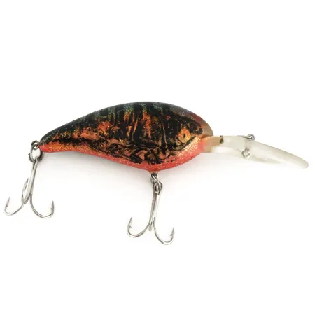 Con un peso de 16 g (3/5 oz), este especialista en profundidad está diseñado para alcanzar profundidades de entre 3,6 y 4,2 m (12-14 pies). Su cuerpo de 7 cm (2 3/4") presenta un complejo esquema de colores con una parte superior jaspeada oscura que transiciona hacia un acabado denso de purpurina naranja y dorada en los costados y el vientre. Identificado con el código de producto 7558, este Norman Deep Little N (DD 14) se mantiene en un estado 5/5, mostrando una superficie de fábrica y herrajes impecables. Su construcción destaca por un prominente babero de plástico transparente diseñado tanto para el lance como para el curricán, equipado con dos anzuelos triples originales y afilados. Fabricado en EE. UU., el acabado de alta calidad es característico de las detalladas paletas de colores que Norman desarrolló para la pesca profesional. Los herrajes plateados están sujetos de forma segura a los ojales reforzados, garantizando la fiabilidad estructural propia de esta serie vintage.