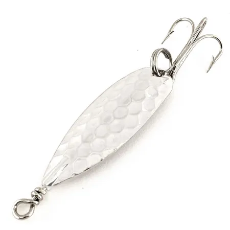 Los acabados de níquel martillado proporcionan un perfil visual distintivo, y este Panther Martin Svizzero Martellato presenta una superficie bellamente texturizada que caracteriza al modelo. Con un peso de 3,3 g (1/8 oz), la cucharilla está equilibrada para aplicaciones de spinning ligero donde se prefiere un destello sutil. El código de producto 12257 identifica este ejemplar fabricado en Italia, que mide exactamente 4 cm (1 1/2"). En condiciones sin usar, las superficies metálicas conservan su brillo original de fábrica sin signos de antigüedad o desgaste. Un robusto eje de alambre atraviesa el centro, terminando en un ojal trenzado, mientras que la cola cuenta con un anilla abierta para el montaje del anzuelo triple. El diseño Svizzero Martellato sigue siendo un elemento básico para los pescadores que buscan truchas o percas, confiando en la construcción sólida y los materiales tradicionales por los que la marca es conocida.
