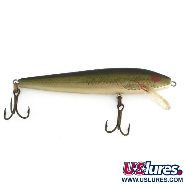 Con un patrón clásico de Bass, este ejemplar de 9 cm (3 1/2") muestra el detallado trabajo de escamas e impresión de la línea lateral que dio fama a Rebel. Con un peso de 6,5 g (1/4 oz), el Rebel Floater (código de producto 7952) es un elemento básico en la historia de los señuelos americanos, fabricado en plástico duradero en los EE. UU. Su babero transparente está diseñado para alcanzar profundidades de entre 0,9 m (3 ft) y 1,8 m (6 ft), lo que lo hace versátil tanto para lances como para curricán. El acabado de pintura en esta unidad específica está en excelente estado 5/5, con un degradado verde oliva profundo en el lomo y un sutil vientre color crema. Destaca el distintivo acento rojo cerca de la agalla, un activador visual característico de este modelo. Equipado con dos anzuelos triples originales, es ideal para una recuperación constante o una técnica de stop-and-go. Los herrajes se mantienen brillantes y sin desgaste, preservando la estética original del fabricante.